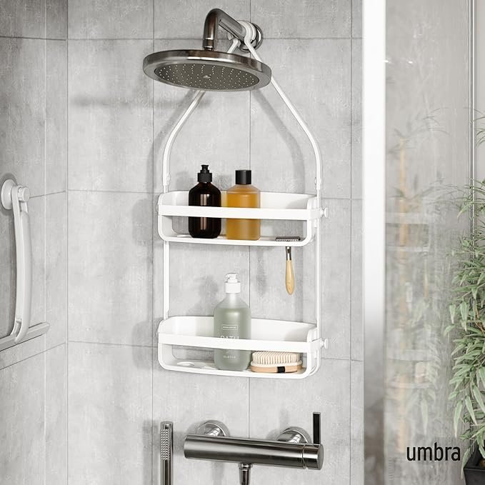 Umbra Flex Hanging Shower Caddy, Bathtub Shelf and Bathroom Organizer, White